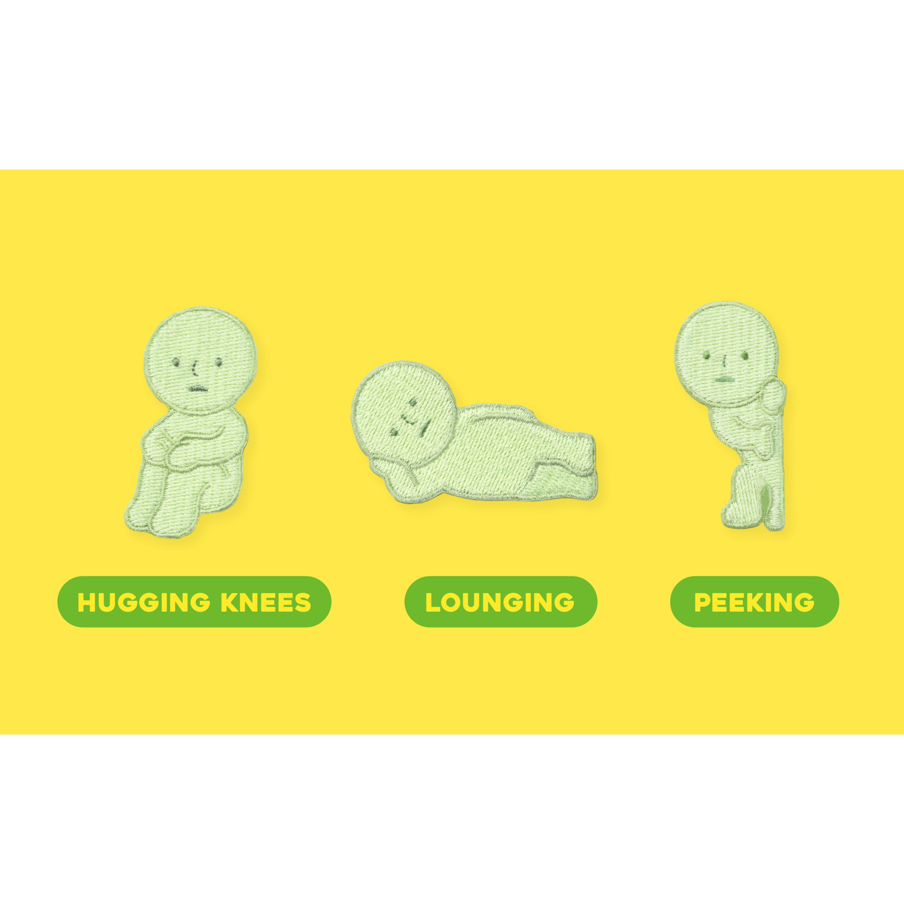 | Style | Smiski Embroidery Sticker – Hugging Knees (1 Piece), Smiski Embroidery Sticker – Lounging (1 Piece), Smiski Embroidery Sticker – Peeking (1 Piece) |